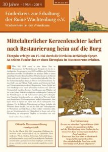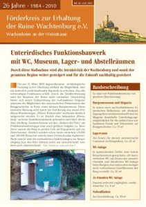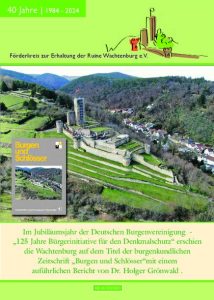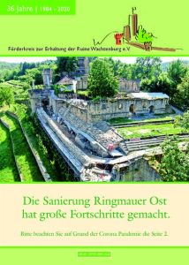 Zweimal im Jahr erscheint unsere Burgzeitung — eine 16-seitige Broschüre mit Berichten über aktuelle Sanierungen, Vereinsarbeit, Veranstaltungen und Termine. Alle Ausgaben seit 2010 stehen als PDF zum Download bereit.